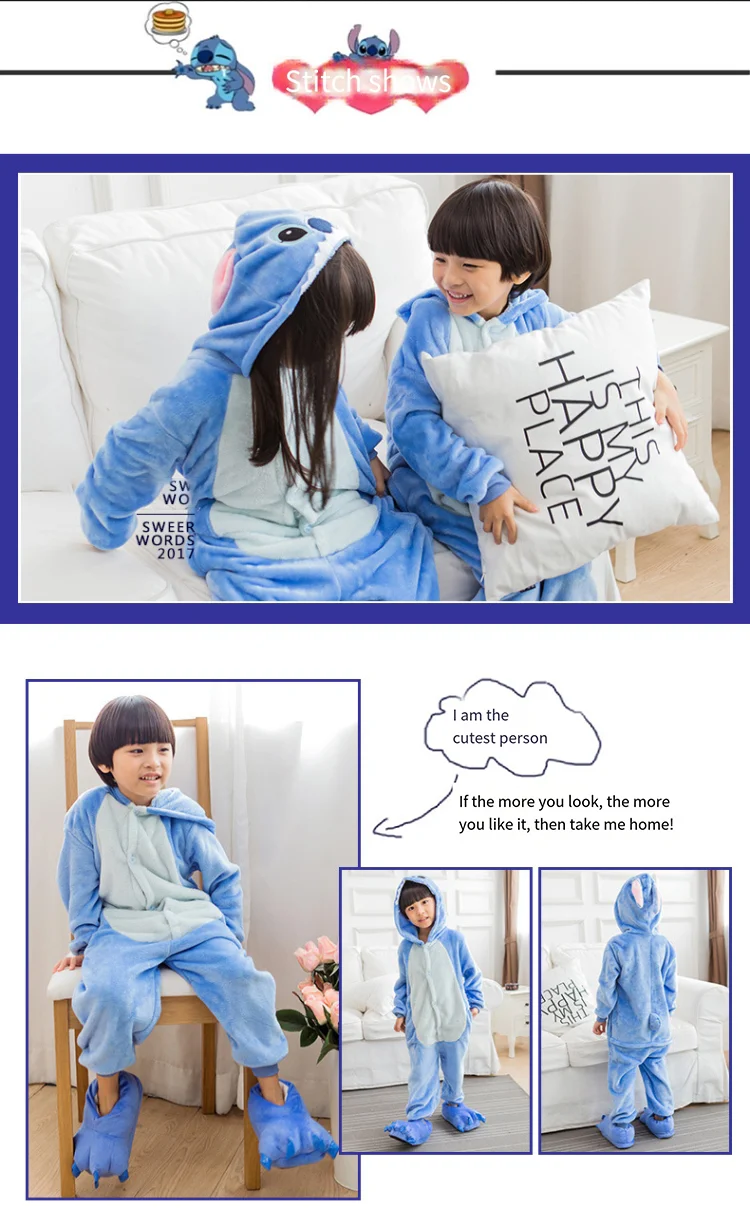 Children's Gift Autumn and Winter Flannel Cartoon One-Piece Pajamas for Boys and